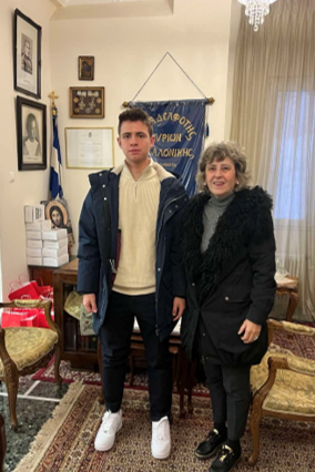 Pictured with Ms. Anna Kesidou-Tsekoura, President of the Philoptochos Adelphotis Kyrion Thessalonikis, and Director of the female students’ dormitory in Thessaloniki, Greece.