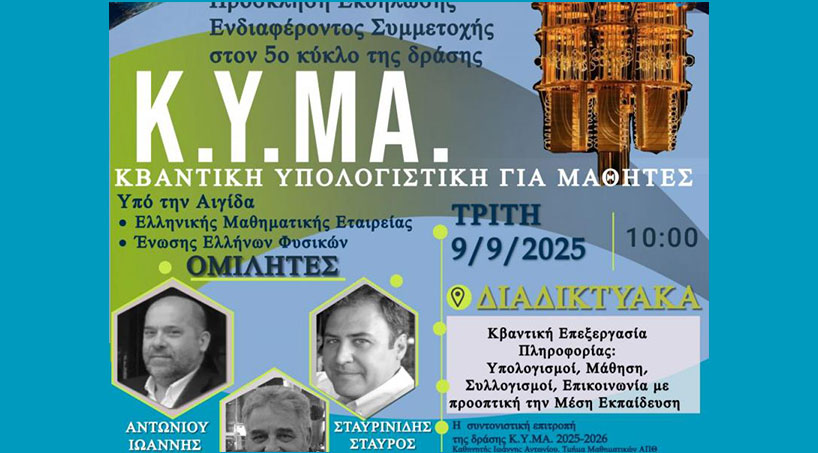 Η εκδήλωση απονομής των βραβείων στους διακριθέντες του 13ου Πανελληνίου Διαγωνισμού Φυσικής Δημοτικού και Γυμνασίου και του 35ου Πανελληνίου Διαγωνισμού Φυσικής Λυκείου των σχολείων της Αττικής θα πραγματοποιηθεί
